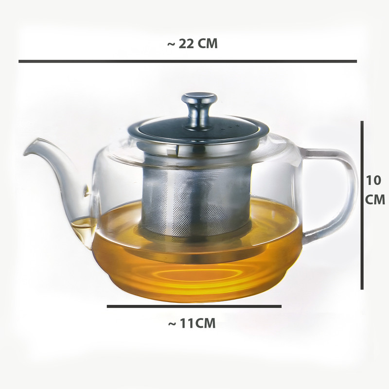 قوری پیرکس - شفاف و با کیفیت - مناسب چایساز,سماور,کتری و شعله ی وارمر-ارتفاع بدون درب حدود 10 سانتی متر-قطر کل کف 13 سانتی متر-قطر قسمت بر آمده ی کف حدود 11 سانتی متر-قطر دهانه حدود 8 سانتی متر-گنجایش حدود 1 لیتر-دارای فیلتر و درب استیل